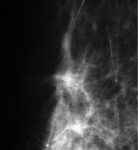 検診目的でマンモグラフィーを撮影したところ 右乳房に小さな病変が見つかりました。